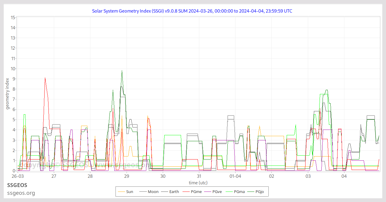 On 27 and 28 March a pair of planetary right-angle geometry occurred with Mercury, Venus and Uranus. This particular geometry occurs about-3-4 times a year. In 2023 three of these right-angle instances resulted in a similar major seismic event (Mw ≥ 7.4) within 5 days. On 29 March and 1 April, two additional planetary conjunctions involving Mercury, Venus, the Sun and Saturn followed on the right-angle geometry.